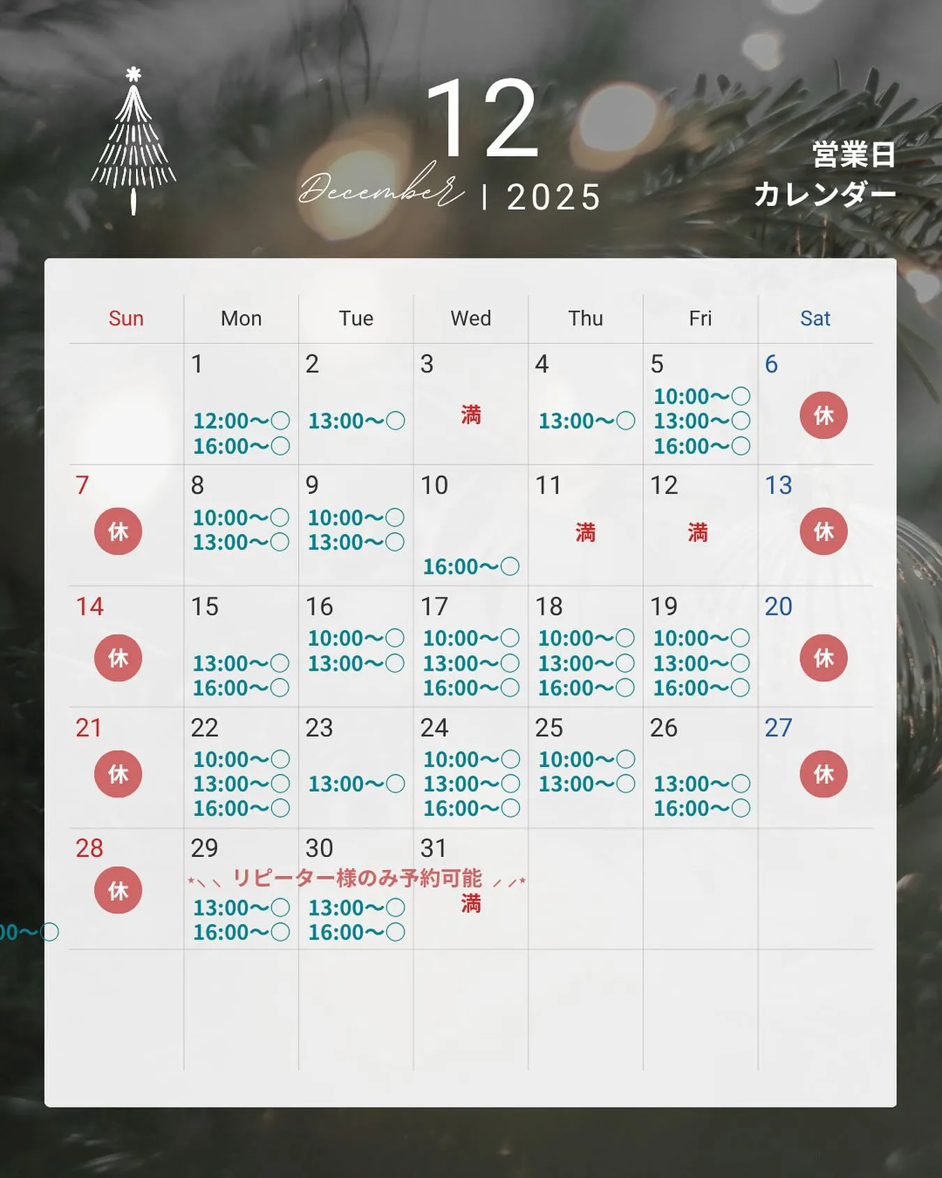 すでに12月もご予約頂き